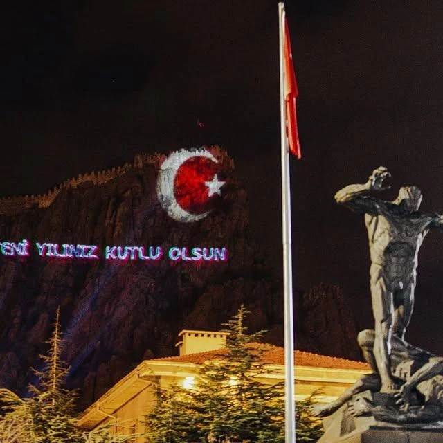 Afyonkarahisar'da, yeni yıl etkinlikleri kapsamında tarihi Karahisar Kalesi'nde lazerlerle yeni yıl mesajları yansıtıldı. Afyonkarahisar Belediye Başkanı Burcu Köksal'ın öncülüğünde gerçekleşen etkinlik, şehrin kalbinde tarihi bir atmosferde kutlandı. Başkan Köksal, "Bu güzel şehirde Atamızın izinde hep birlikte daha nice umut dolu yıllara" diyerek bu özel etkinliğe dair duygularını ifade etti.