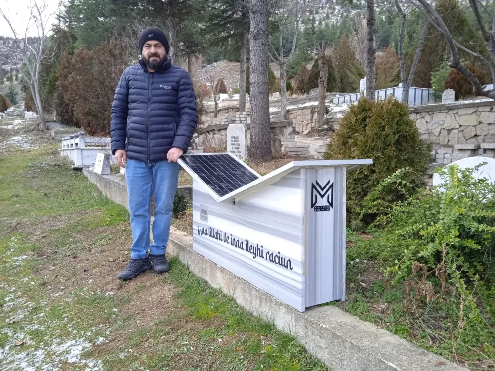 Güneş enerjisiyle çalışan ve mezarlıklarda 24 saat boyunca Kur'an-ı Kerim tilaveti yapabilen bir sistem tasarladı.