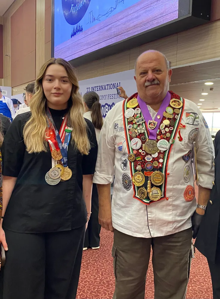 Türkiye Aşçılar Federasyonu (TAŞFED) tarafından, Bahçelievler Belediyesi iş birliğiyle düzenlenen 22. Uluslararası İstanbul Mutfak Günleri, gastronomi dünyasının önemli isimlerini İstanbul’da bir araya getirdi. 27 ülkeden şeflerin, 1500 yarışmacının ve 200 jüri üyesinin katıldığı organizasyon, genç yeteneklerin uluslararası arenada kendilerini göstermesine sahne oldu.Yarışmada gösterdiği başarılı performansla dikkat çeken Afyonkarahisarlı genç şef Ceylin Çalış, tatlı, ana yemek ve makarna kategorilerinde 3 altın madalya kazanarak büyük bir gurur yaşattı. Genç yaşına rağmen teknik bilgi, yaratıcılık ve sunum alanlarında sergilediği üstün performans, jüri üyeleri tarafından tam not aldı. Gastronomisiyle Türkiye’nin önde gelen şehirlerinden biri olan Afyonkarahisar’ın köklü mutfak kültüründen yetişen Ceylin Çalış, elde ettiği bu başarıyla hem memleketini hem de ülkemizi uluslararası platformda başarıyla temsil etti. Alanında dünyaca ünlü ve saygın şeflerin yer aldığı jüri kadrosunun değerlendirmeleri sonucunda kazanılan bu dereceler, Ceylin Çalış’ın uluslararası standartlarda bir şef olma yolunda emin adımlarla ilerlediğini ortaya koydu. Bu önemli başarısıyla Türkiye’yi yurt dışında temsil edecek yarışmacılardan biri olma şansını yakaladı Ceylin Çalış, önümüzdeki dönemde katılacağı uluslararası organizasyonlarda Afyonkarahisar’ın zengin gastronomi mirasını daha geniş kitlelere tanıtmayı hedefliyor.