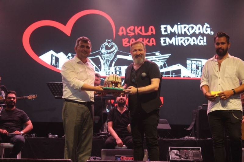 Konser sonunda sahneye çıkan Emirdağ Kaymakamı Osman Bilici ve Belediye Başkanı Serkan Koyuncu katılanlara teşekkür ederek sahne alan sanatçılara Emirdağ'ın tescilli ürünü Topakev'i takdim ettiler.