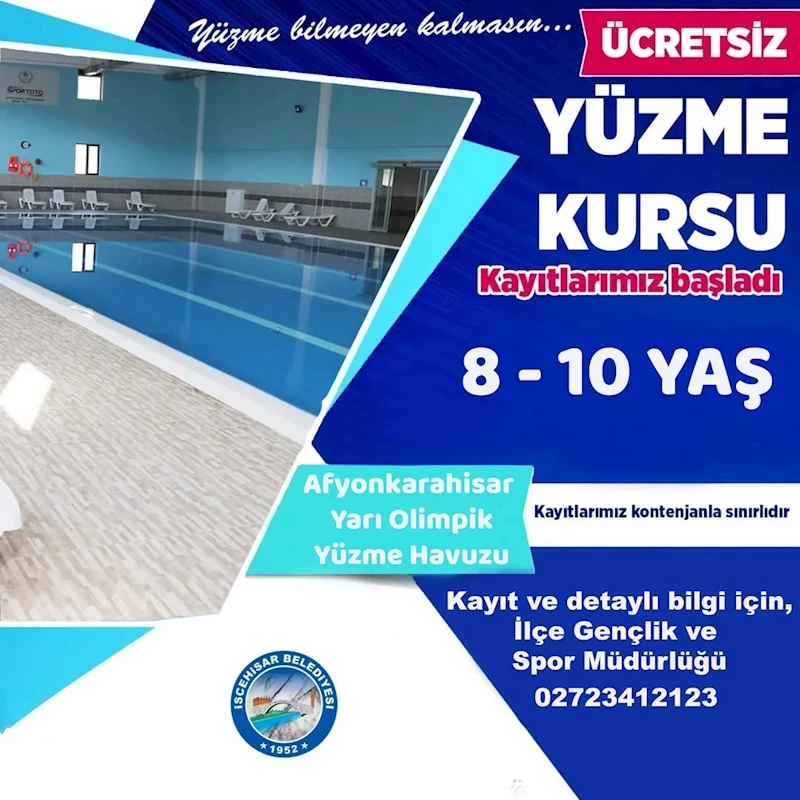 İscehisar İlçe Gençlik ve Spor Müdürlüğü iş birliğiyle düzenlenen ücretsiz yüzme kursları için kayıtlar başladı. 8