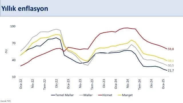 Hizmetler sektöründe ise yıllık enflasyon oranı 35 puan düşerek yüzde 59.8 oldu. Hizmet sektörü, birçok ekonomistin yakından takip ettiği bir alan ve bu sektördeki düşüş, dezenflasyon süreci açısından olumlu bir gelişme olarak değerlendiriliyor.